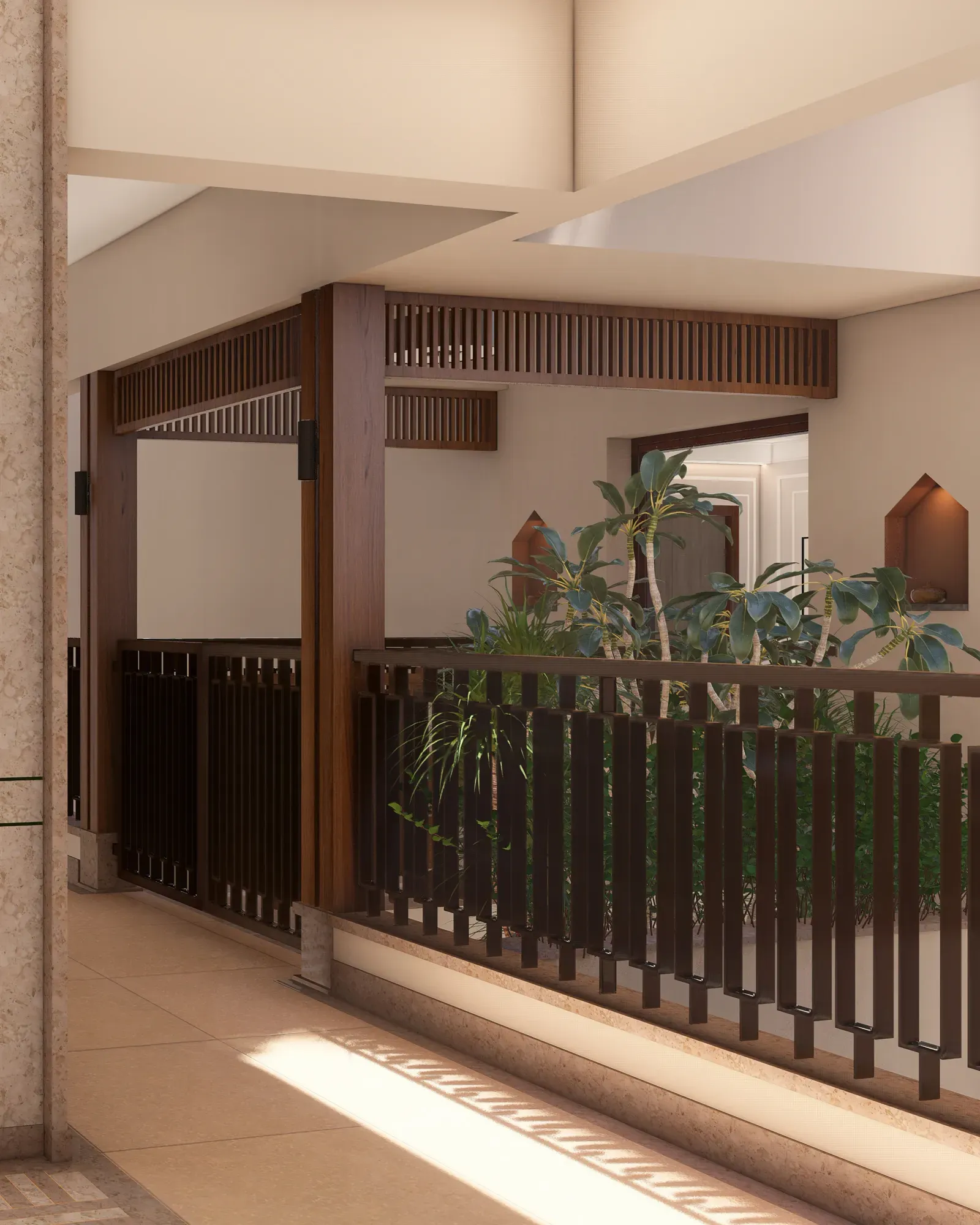 - Each floor has hidden plumbing lines from the overhead tank.