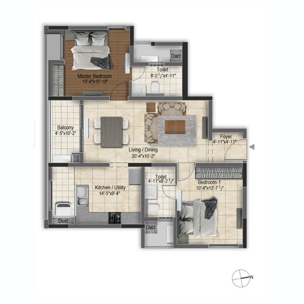 - Area will all have high-quality 2'0" x 2'0" vitrified flooring with 4" skirting.